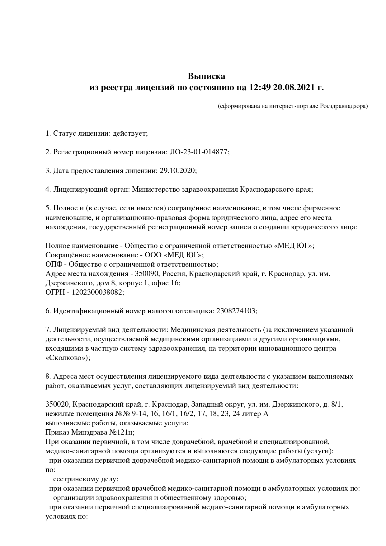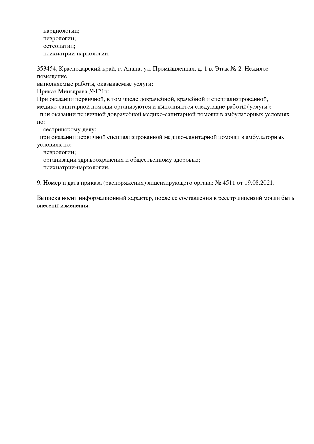Медицинская лицензия с 1996 года