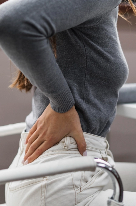 Радикулит — это воспаление или раздражение корешков спинномозговых нервов, чаще всего в поясничном отделе. Проявляется резкой болью в спине, которая может отдавать в ногу, сопровождаться онемением или покалыванием.
